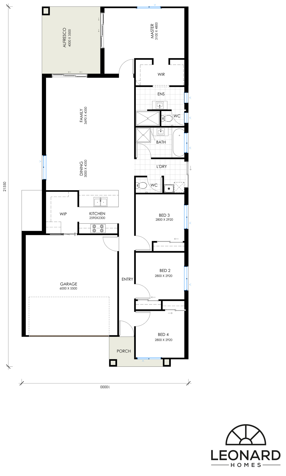 The NEWTOWN 186 is the larger version of the NEWTOWN 158. This design features four bedrooms, large kitchen with walk through pantry, and the master bedroom at the rear of the home. Â